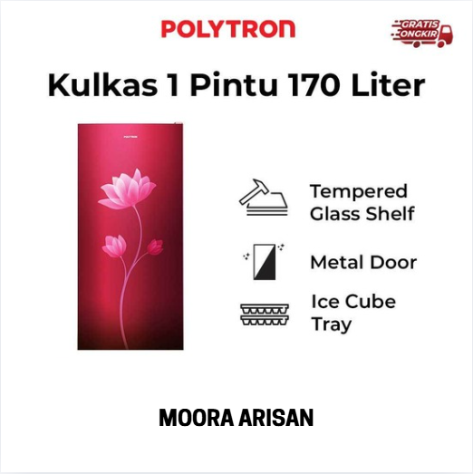 RF001 - POLYTRON Kulkas 1 Pintu Metallic Series 170 liter PRB 179R