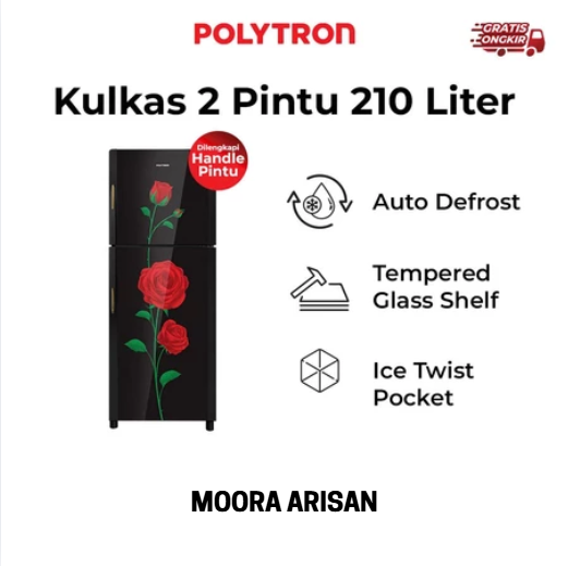 RF004 - POLYTRON Kulkas 2 Pintu Belleza Varia 210 liter PRM